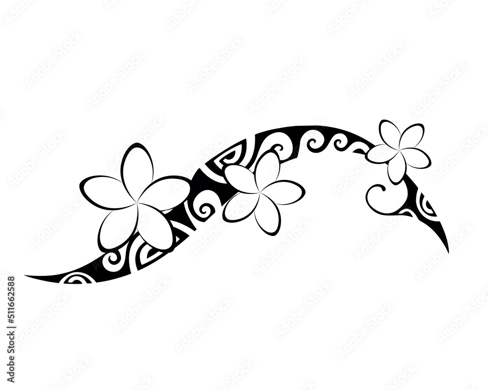 Maori Style Tattoo Ethnic Decorative Oriental Ornament With Frangipani Plumeria Flowers Coloring Book Page Stock Vektorgrafik Adobe Stock